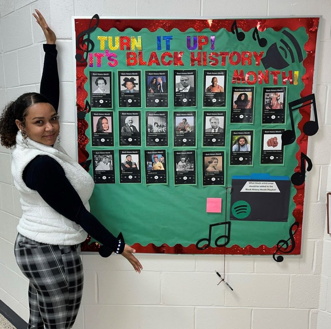 Turn it up! It's Black History Month! Student Support Specialist Kaylee at Snipes Academy created profiles of famous figures in Black history and styled them to look like songs on Spotify. Students could add additional Black artists to the playlist.