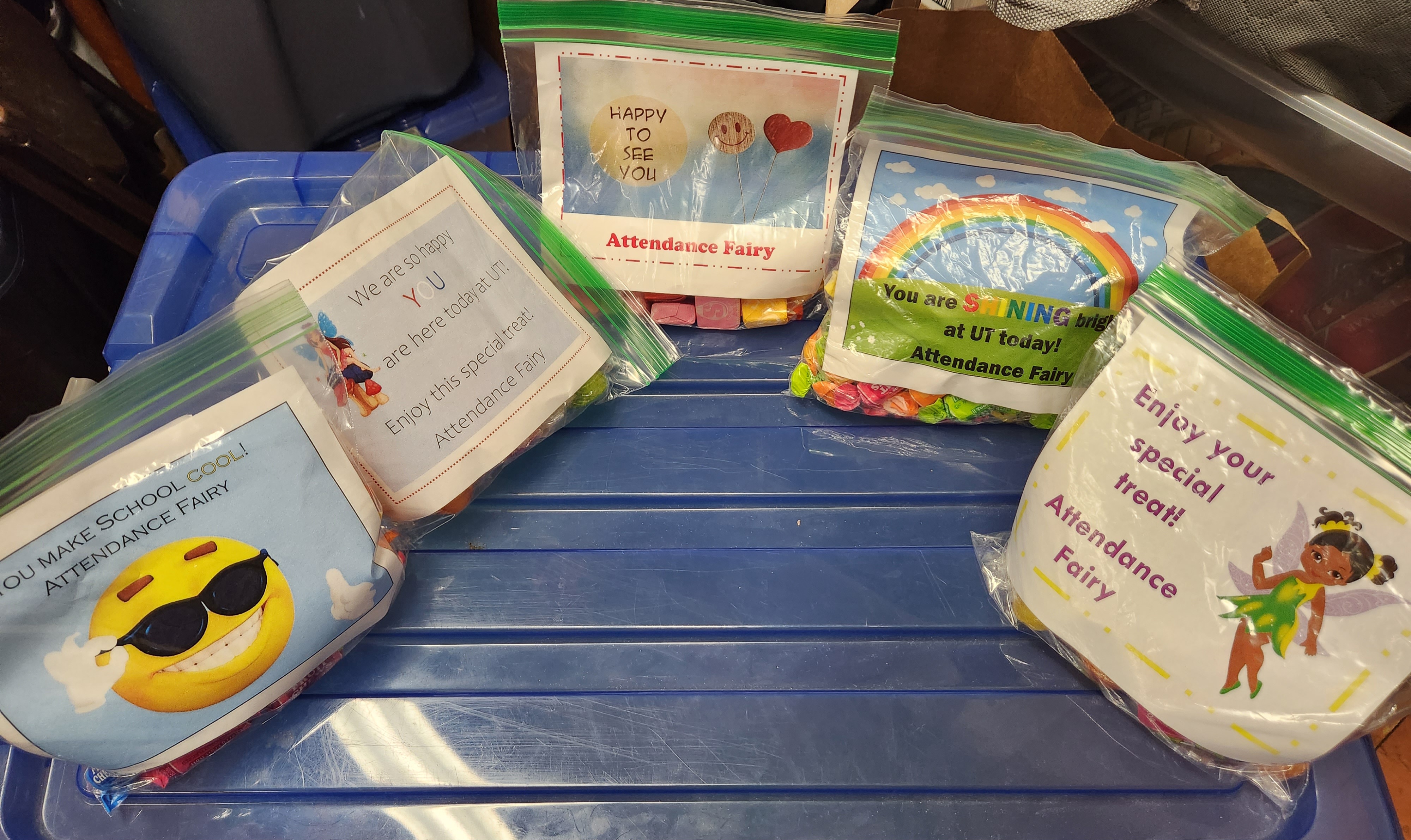 Heather and her high school students support the program each month by assembling the treat bags and visiting Union Terrace Elementary to demonstrate to the younger students the importance of coming to class. Giving back is one of Heather's main focuses for her students. She says that assisting with the Attendance Fairy program has given her students a sense of pride because they’re serving as an example for the elementary students.