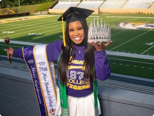CIS of Atlanta alumna Mya Schofield is a proud graduate of Benedict College, a Historically Black College & University in Columbia, S.C. While attending Benedict College, she made history as the first woman to hold the position of Student Government Association President and was crowned the 79th Miss Benedict College.
